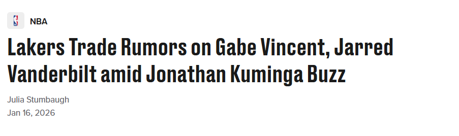 The Athletic也发布了类似报道,称“联盟和球队消息源证实,湖人对库明加确有一定兴趣目前尚不清楚双方是否会展开谈判。消息源称,勇士队已察觉到湖人的兴趣,正静观事态发展。”